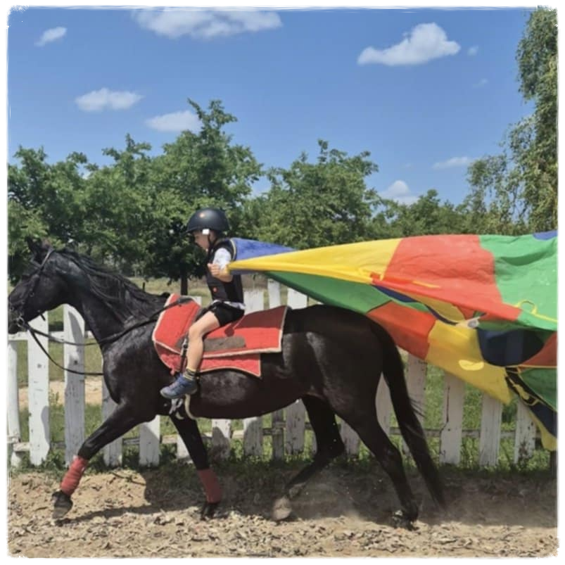 - Kék-sárga világok: A világos színjelzések biztonságot adnak a gyerekeknek az orientációban, és segítenek a felnőtteknek a ló koncentrációjának pontos irányításában.